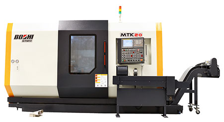 MTK20是一款多刀架數(shù)控車銑中心,機床采用雙主軸、雙刀架對列布局,可實現(xiàn)雙主軸、雙刀架的同時切削加工,機床具有Y軸功能和雙C軸功能,能完成工件的強力銑削。該機床具備4軸聯(lián)動功能,配合副主軸的X、Z雙向進給,可以實現(xiàn)雙主軸、雙刀架的重疊加工,保證在一次裝夾下完成復雜工件的全部或大部分工序的加工,適合于形狀復雜工件的加工,能適用于航空、航天、汽車、輕工、機械等行業(yè)的加工要求。